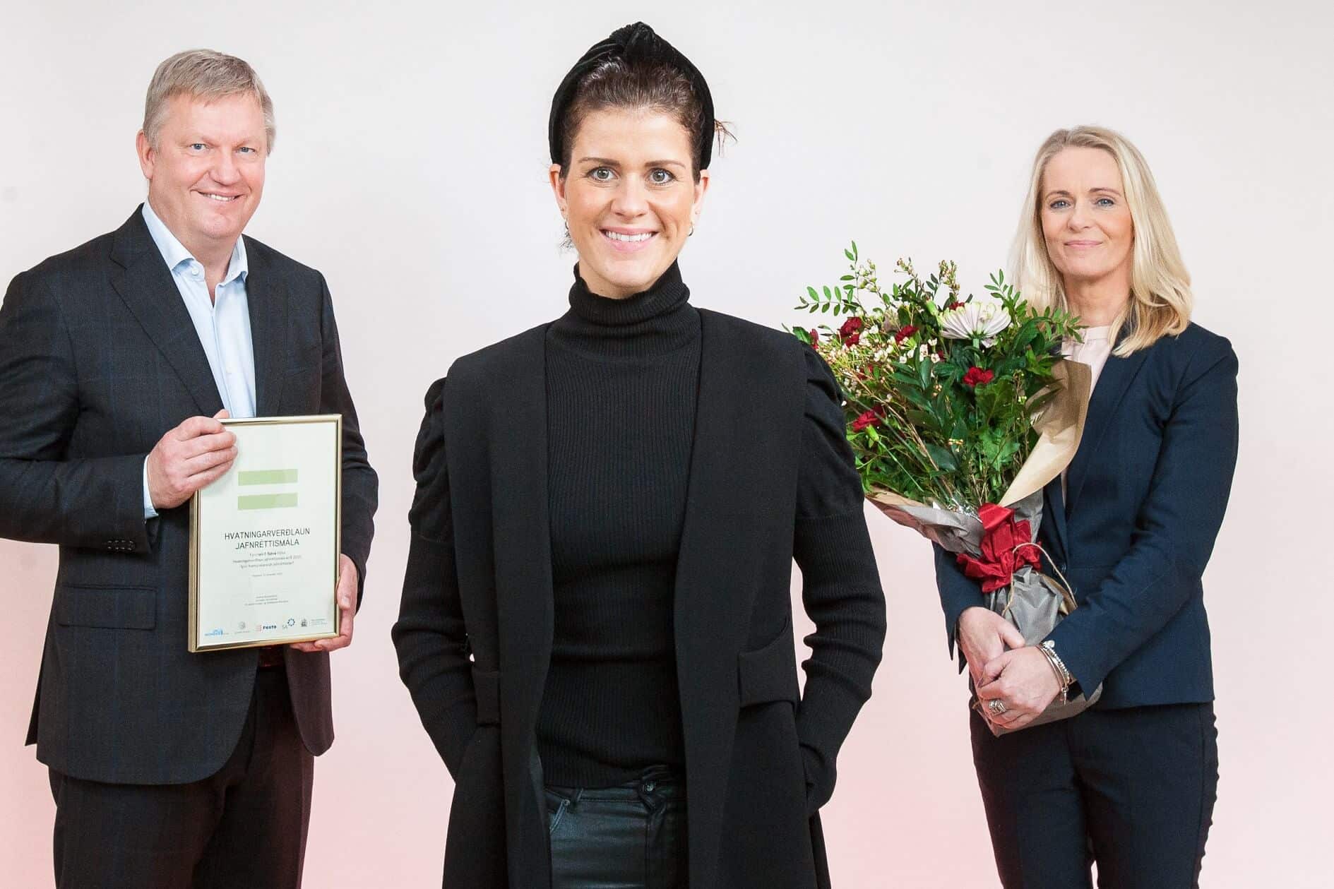 Hvatningarverðlaun jafnréttismála 2020 voru í dag veitt í sjöunda sinn á rafrænum viðburði. Í ár hlaut Sjóva verðlaunin en einnig hlaut Pink Iceland sérstök sprotaverðlaun. Þórdís Kolbrún Reykfjörð Gylfadóttir, ferðamála-, iðnaðar- og nýsköpunarráðherra afhenti verðlaunin.