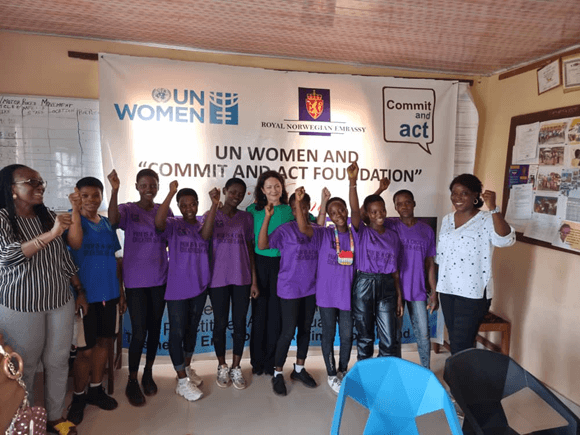 Suðningshópur stúlkna sem ekki hafa verið limlestar á kynfærum ásamt yfirmanni landsskrifstofu UN Women í Síerra Leone.